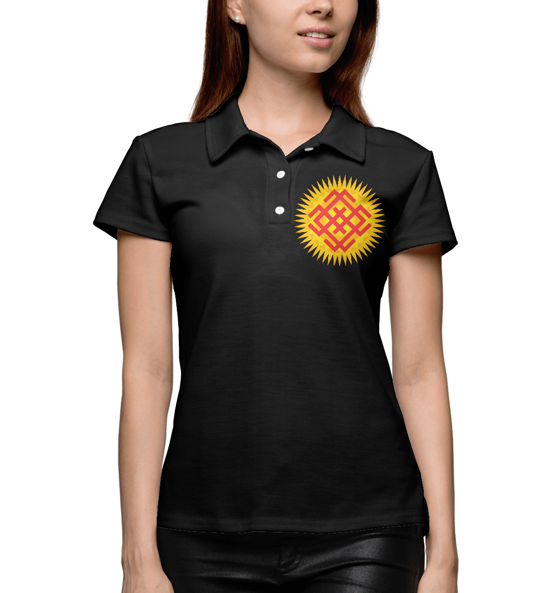 Женское поло с принтом «Символ славян в солнце»