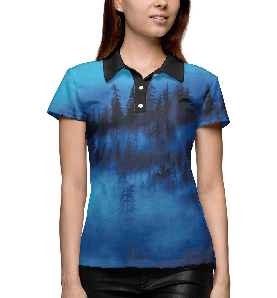 Женское поло с принтом «Синий туман»