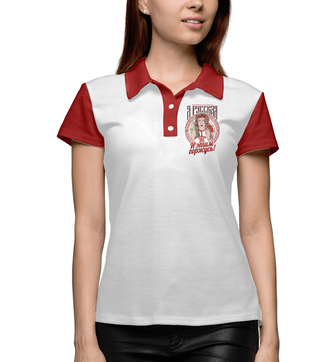 Женское поло с принтом «Славянка / Я Русская! красно-белый фон»