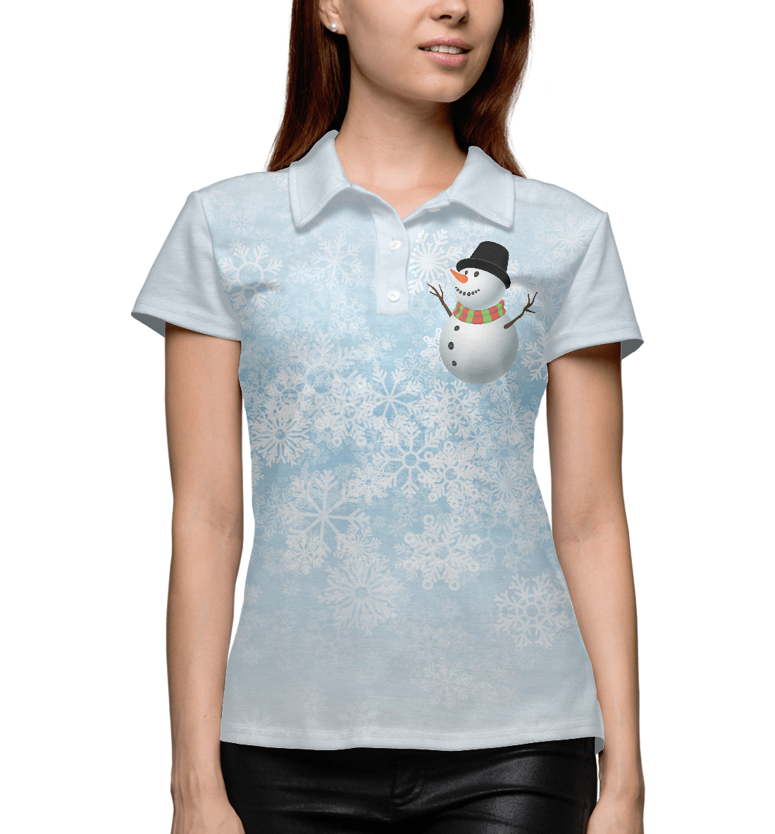 Женское поло с принтом «Снеговик»