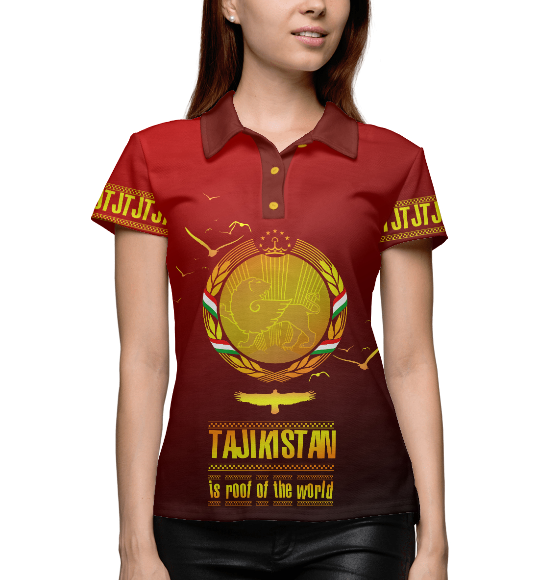 Женское поло с принтом «Таджикистан крыша мира»