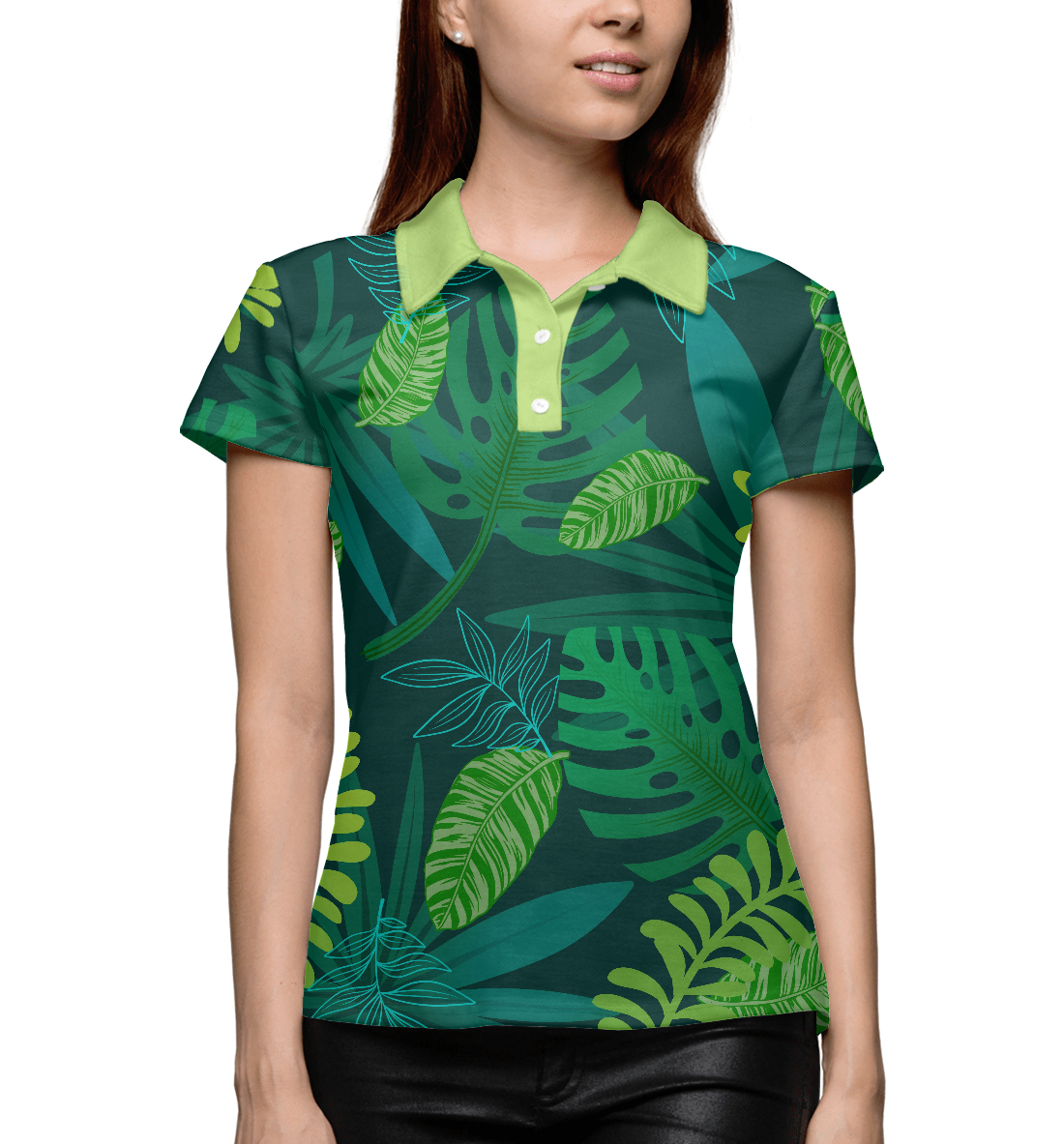 Женское поло с принтом «Тропические листья из серии тропики»