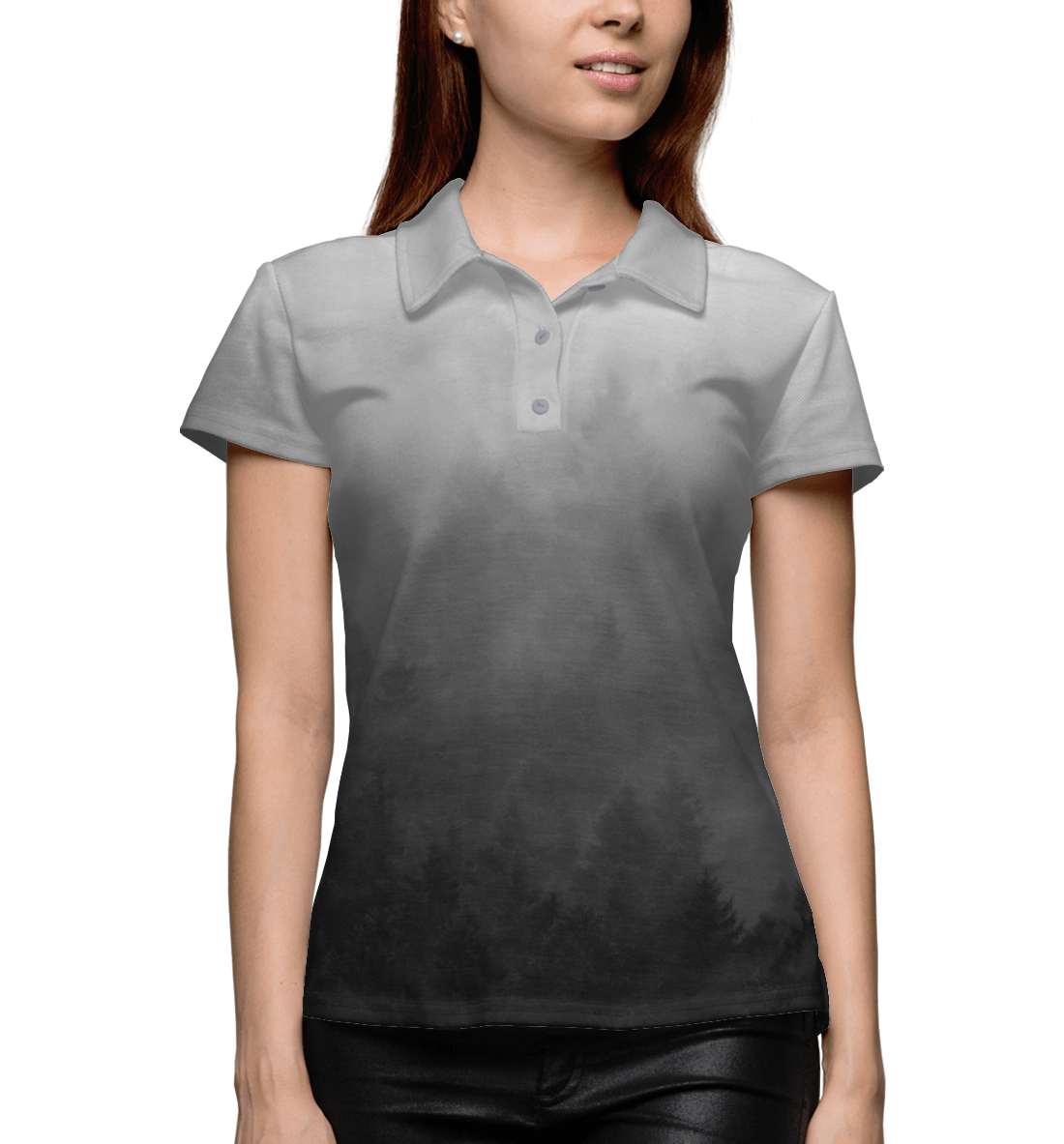 Женское поло с принтом «Туман над лесом»