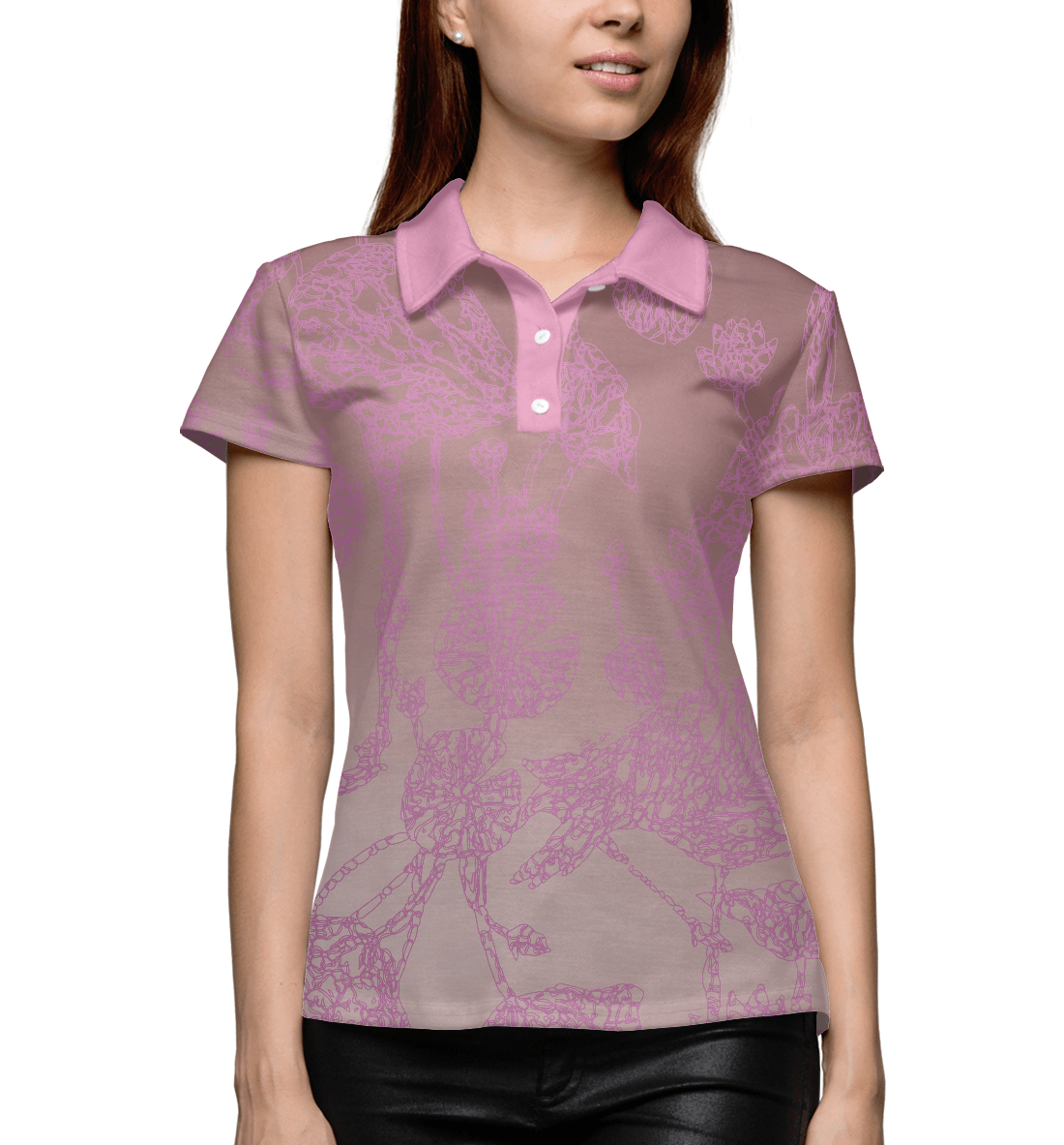 Женское поло с принтом «Узор листьев и цветов лотоса (розовый)»