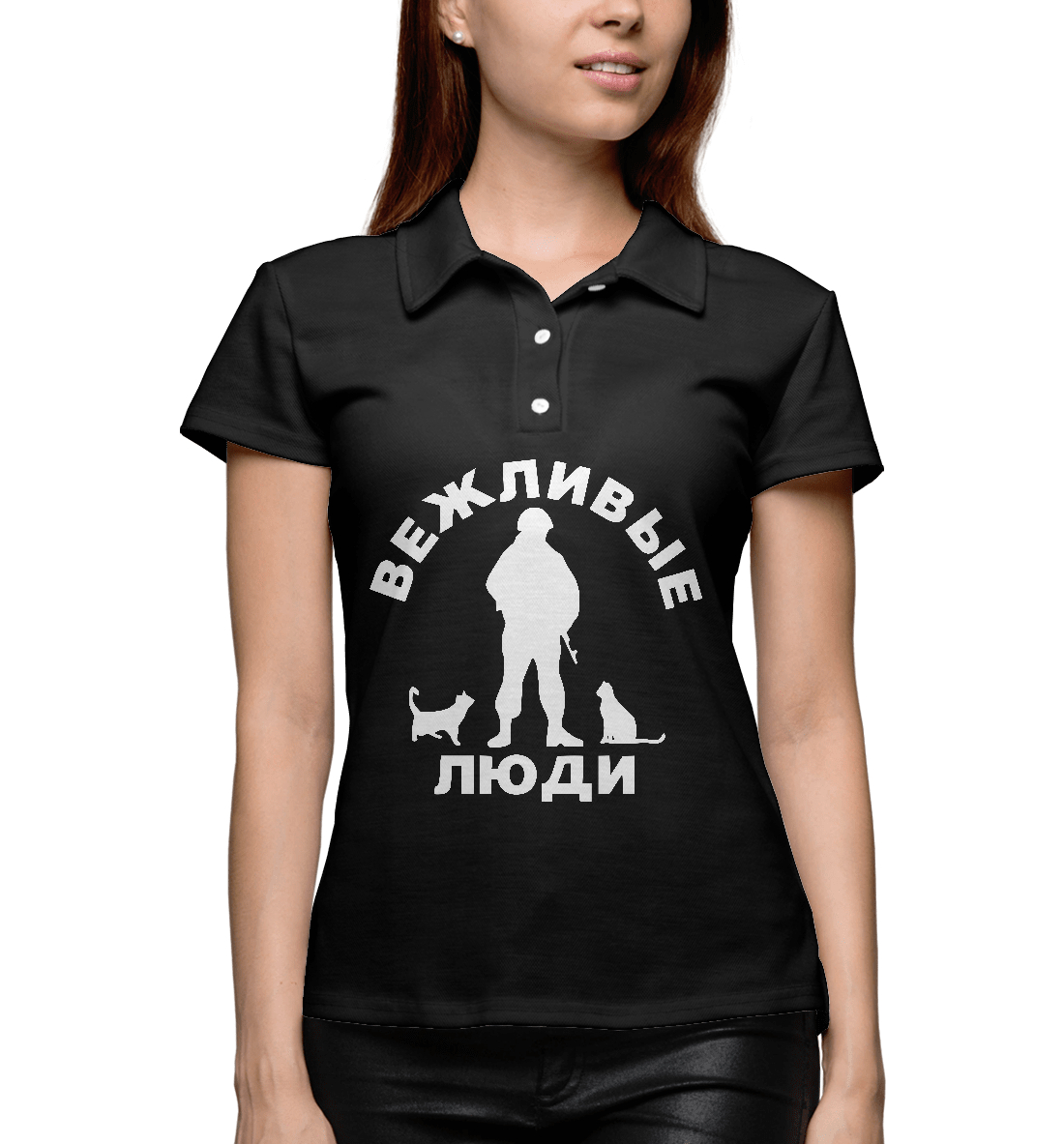 Женское поло с принтом «Вежливые люди (силуэт)»