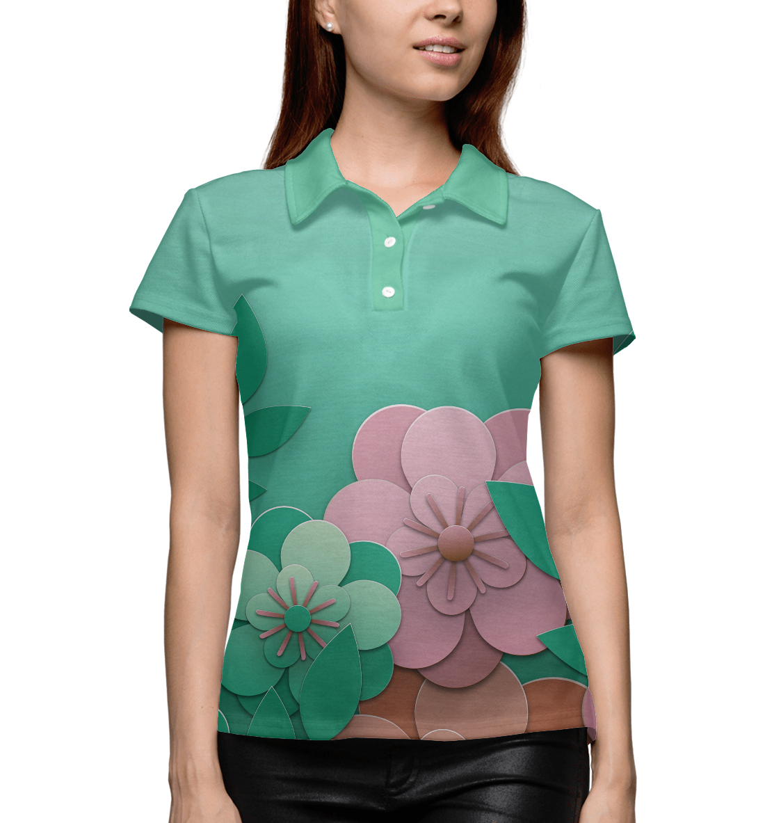 Женское поло с принтом «Веселая клумба»
