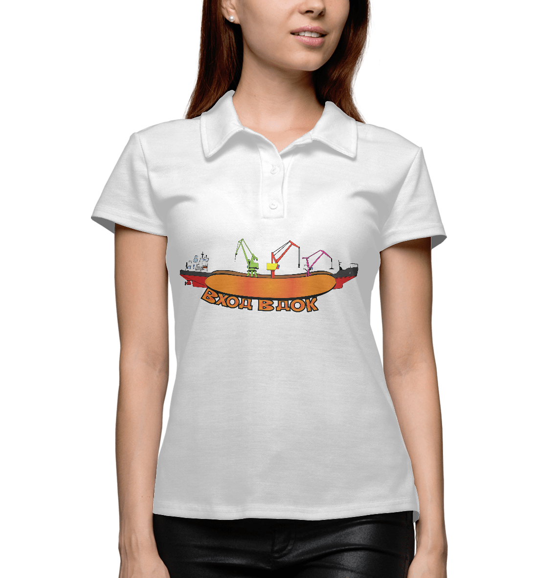 Женское поло с принтом «Вход в Док»