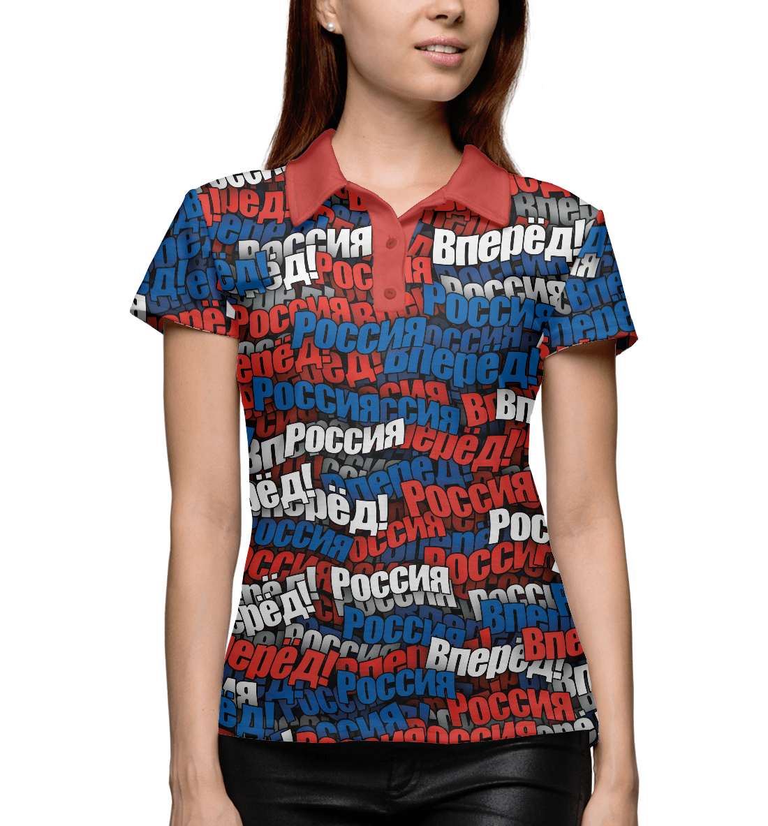 Женское поло с принтом «Вперёд Вперёд Россия!»