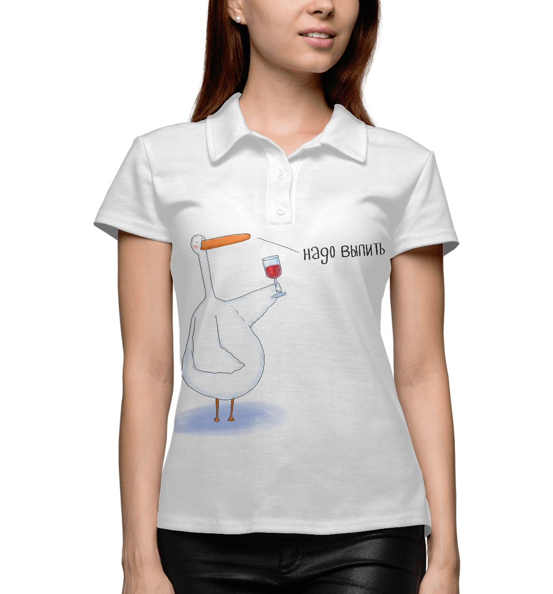 Женское поло с принтом «Все любят винишко»