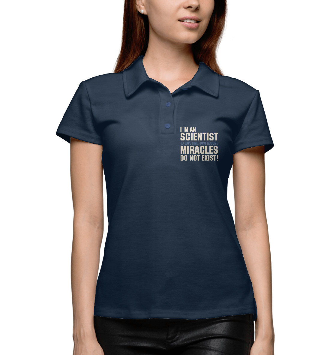 Женское поло с принтом «Я ученый! Чудес не существует!»