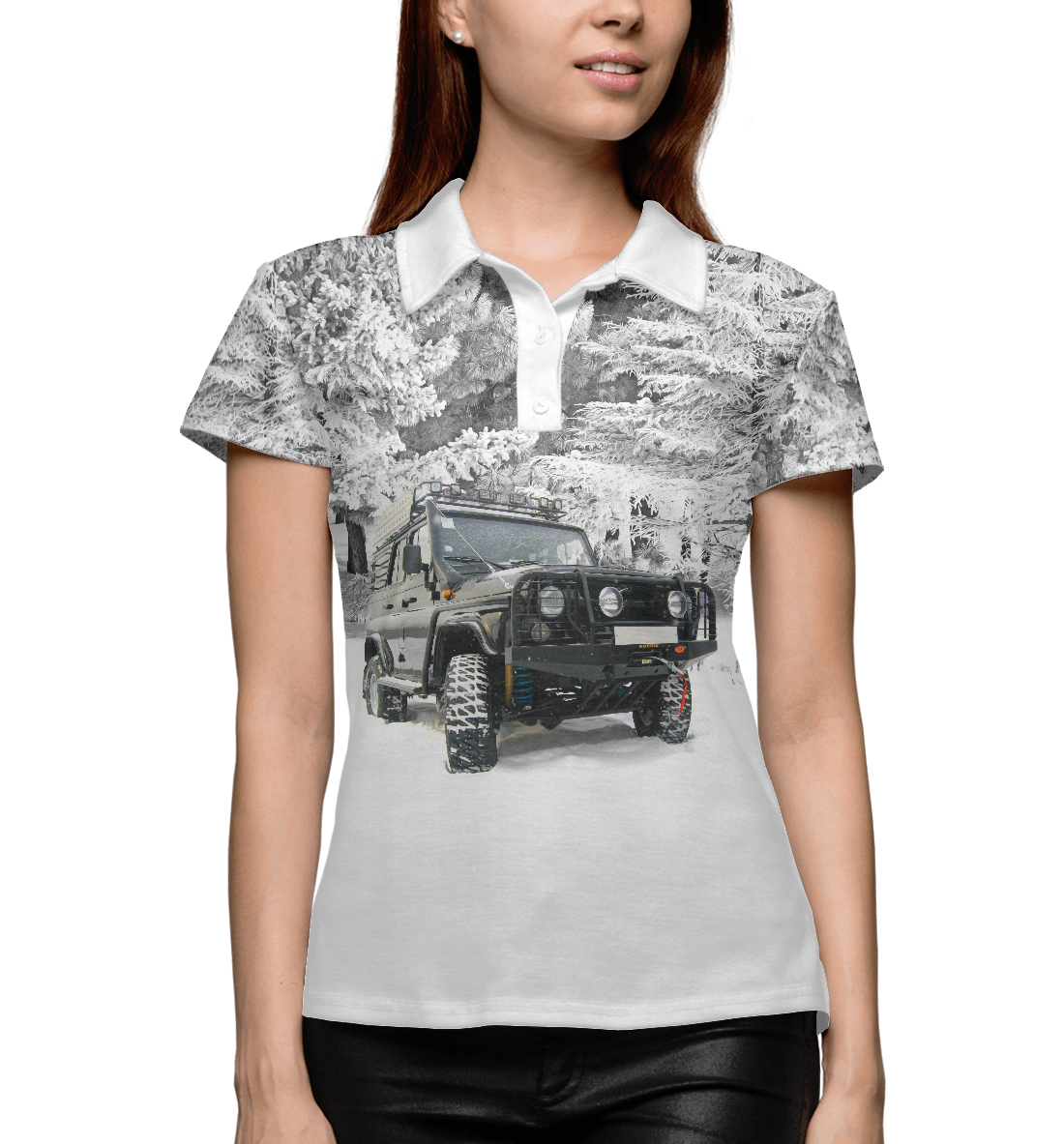 Женское поло с принтом «Зимний Уазик»
