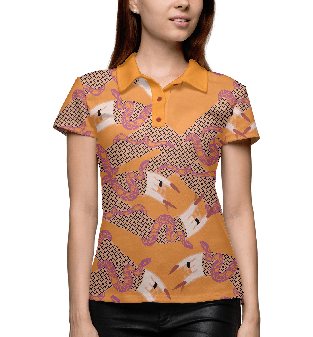 Женское поло с принтом «Змея обвивает руку с острыми ногтями»