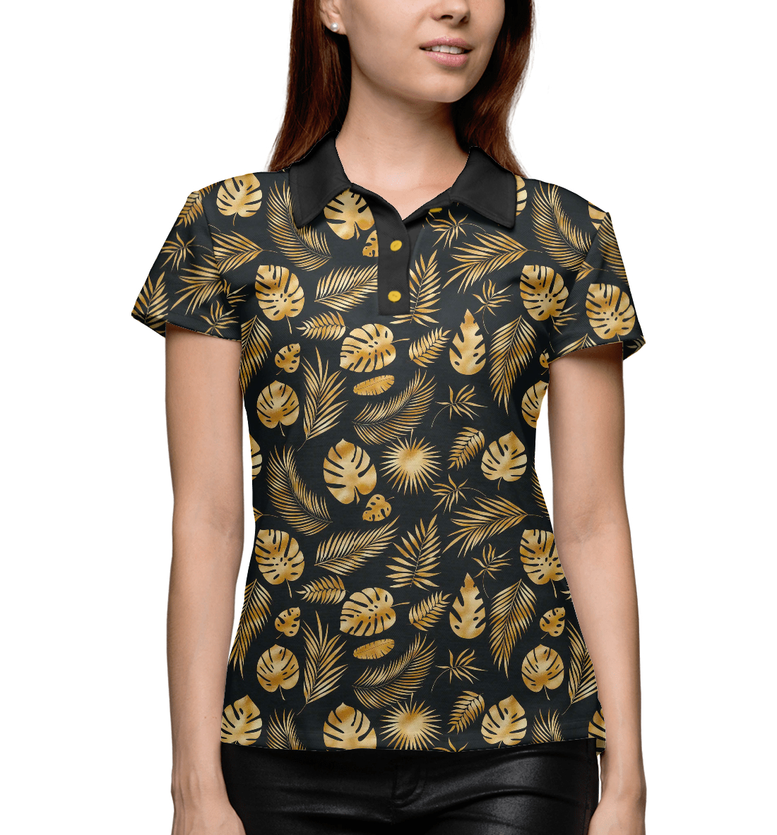 Женское поло с принтом «Золотые листья паттерн»