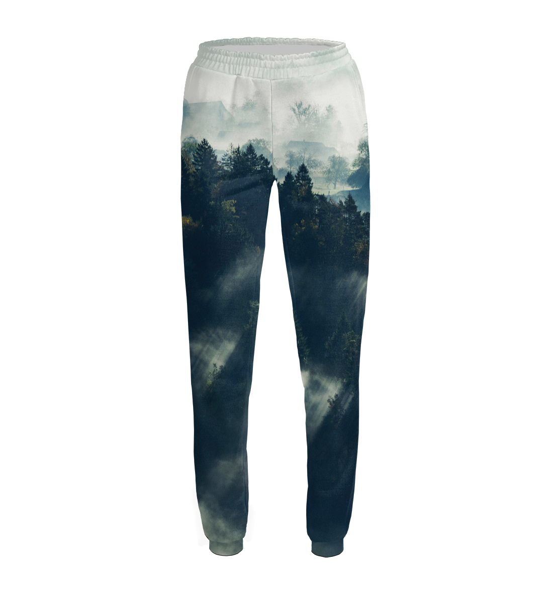 Женские спортивные штаны Туманный лес. Лучи солнца